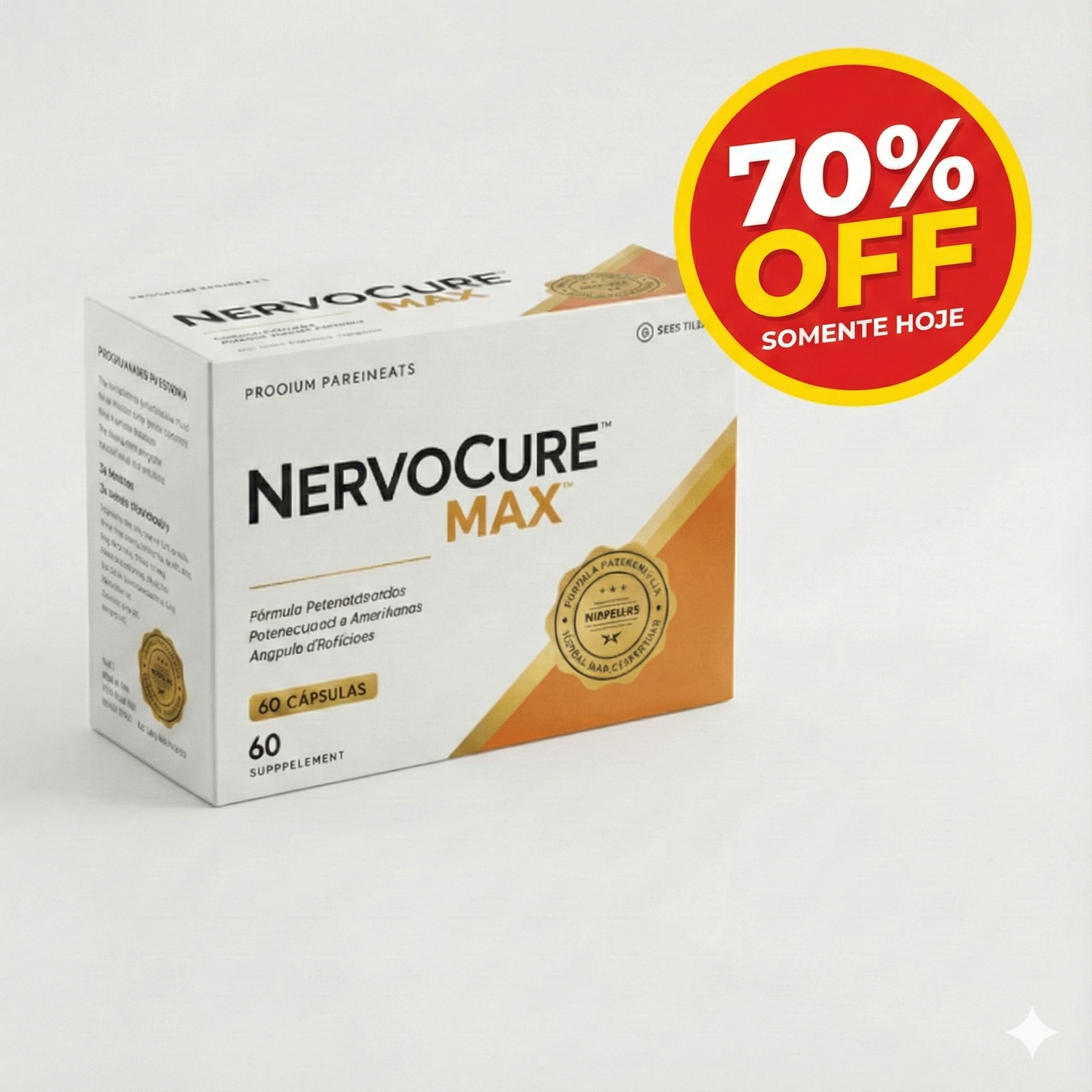 A melhor parte é que o NERVOCURE MAX é completamente seguro, sem contraindicações, efeitos colaterais e sem agredir o estômago. Sua fórmula poderosa, vinda de Israel, foi desenvolvida para reduzir o risco de paralisia e cirurgias na coluna. E o melhor de tudo: você não precisa de uma prescrição médica para utilizá-lo, tornando-o acessível a todos.